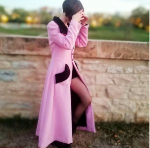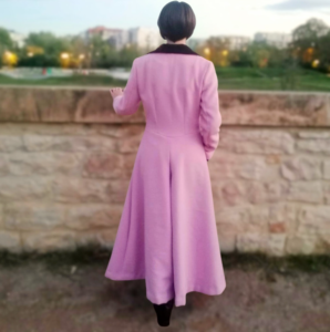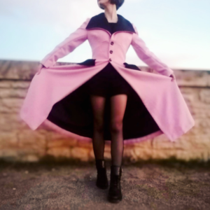 Et comme si le modèle rétro ne suffisait pas, il a fallu que je rajoute encore plus d’originalité avec la couleur rose. Pour ceux qui me connaissent, je suis addicte au rose. Donc forcément, il fallait que j’aie un manteau rose dans ma garde-robe ! Mais un manteau entièrement rose, je n’étais pas convaincu. Donc j’ai profité de son grand col de ses poches pour pouvoir contraster avec un peu de noir.